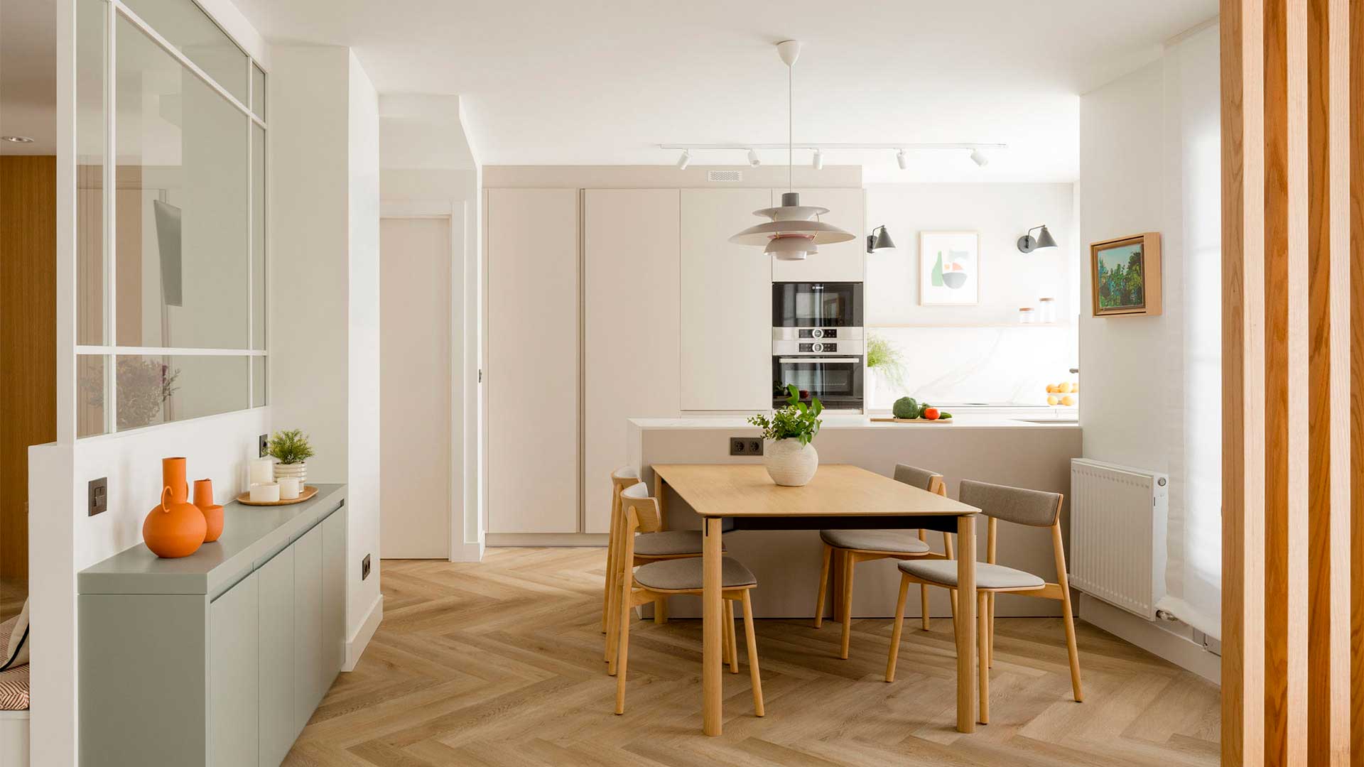 La madera y una gama cromática neutra con puntos de color, convierten esta vivienda en un auténtico hogar familiar.