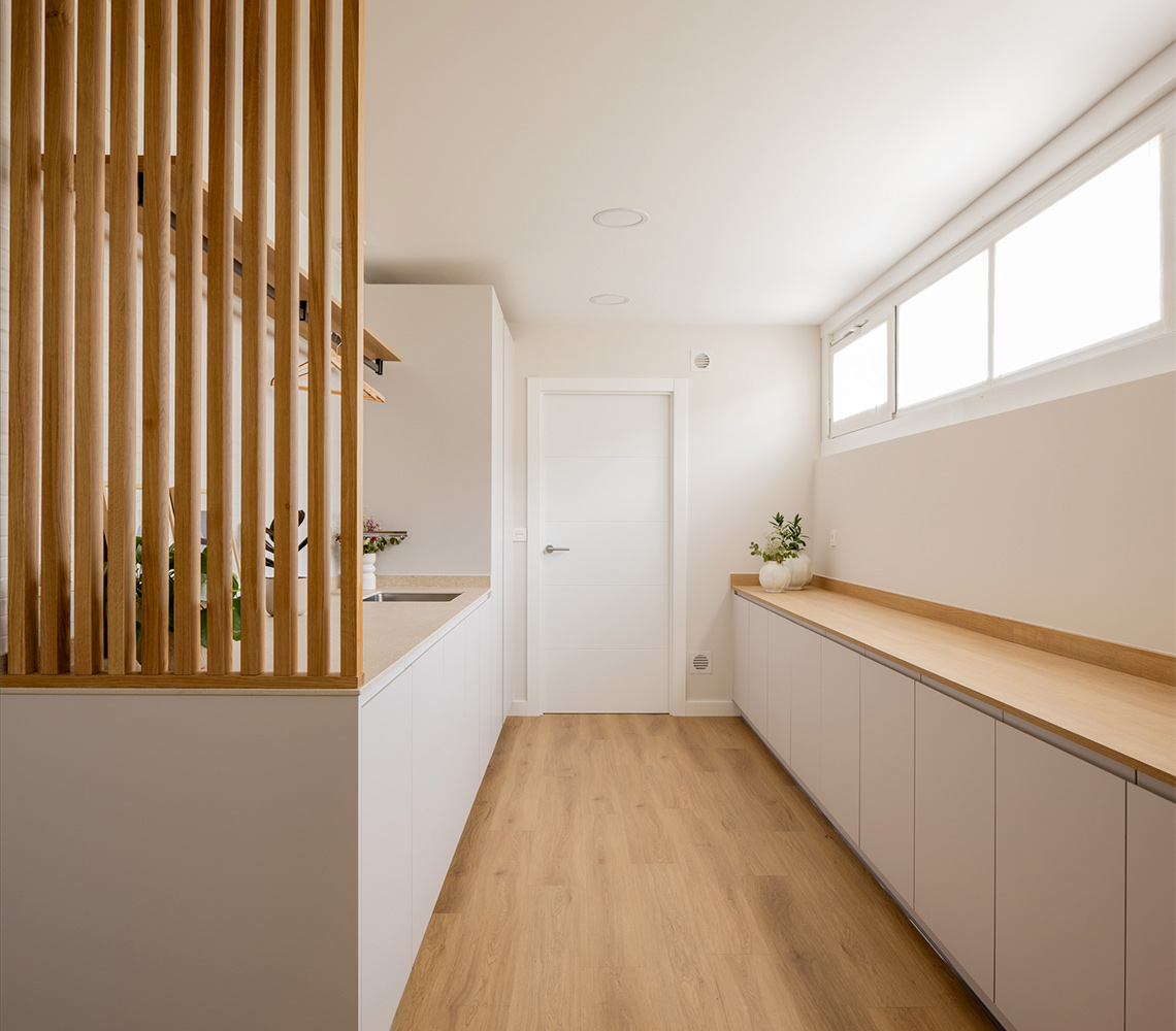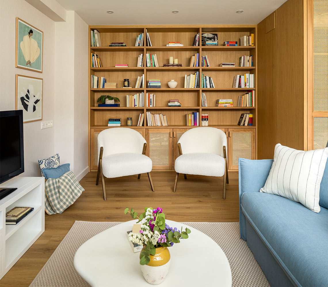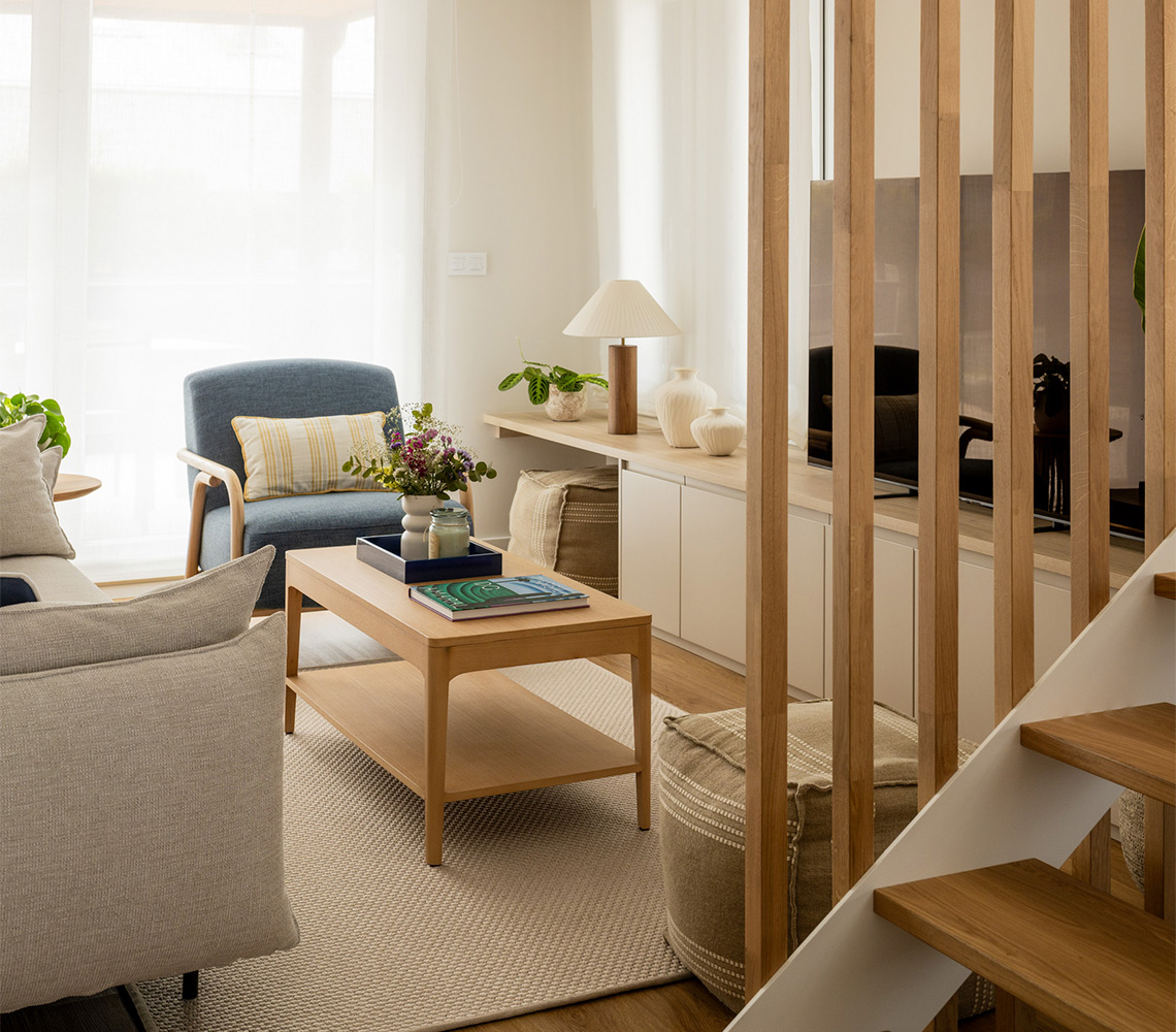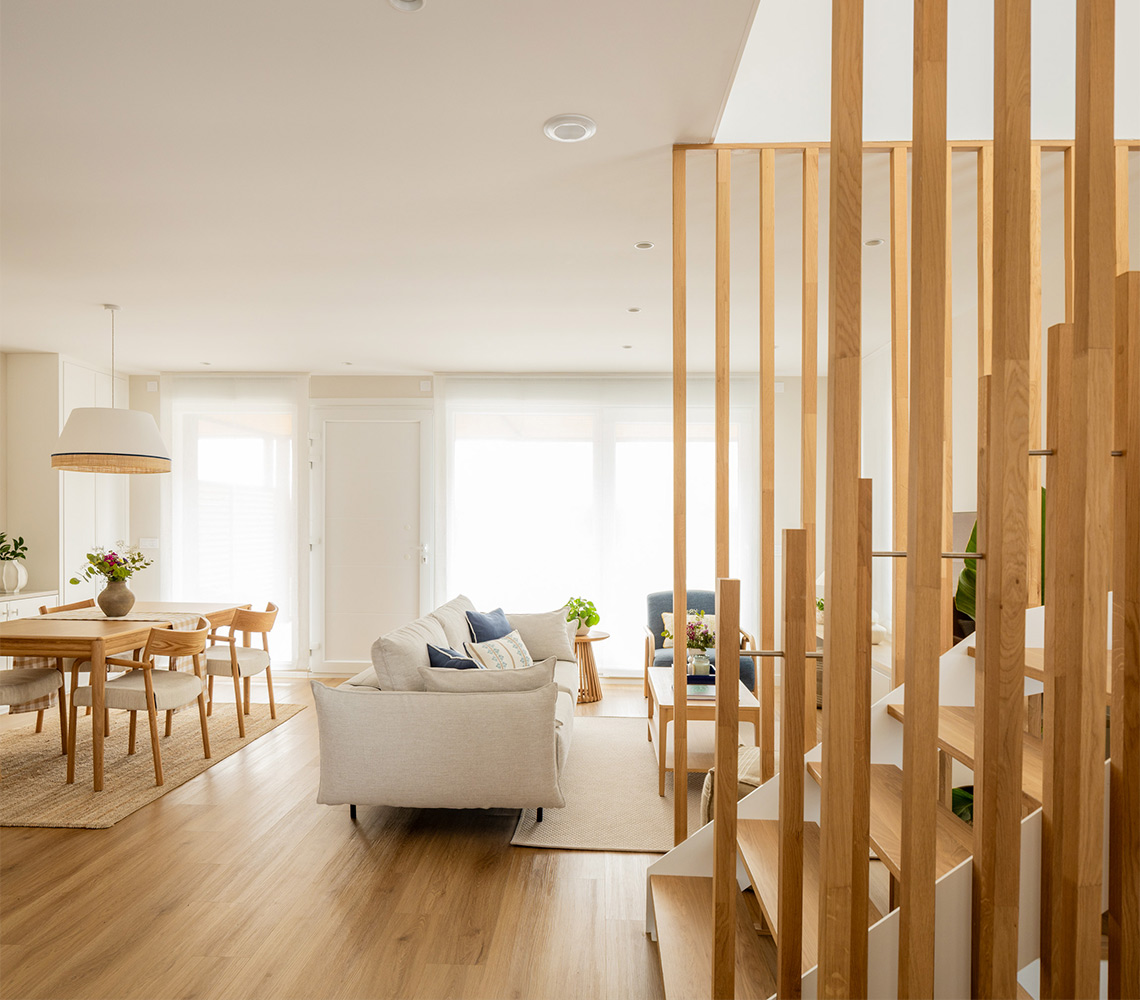 En Moralima Studio, asumimos el reto de transformar una vivienda de tres plantas, en un hogar cálido, funcional y lleno de luz. Nuestros clientes confiaron en nosotros para llevar a cabo la decoración integral, con el objetivo de crear un refugio que evocara la cercanía del mar. El diseño de interiores se basa en una paleta de colores neutros con matices azules, una elección que aporta serenidad, potencia la luz natural y unifica visualmente todas las estancias. Este enfoque no solo maximiza la luminosidad existente, sino que también crea un ambiente relajante y armonioso. La carpintería a medida fue un elemento clave en este proyecto, permitiendo soluciones de almacenamiento personalizadas y una organización eficiente en cada rincón de la vivienda. Este proyecto de interiorismo es un ejemplo de cómo el diseño bien pensado puede transformar un espacio en un hogar único y especial.